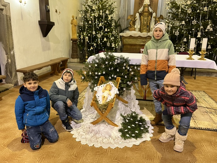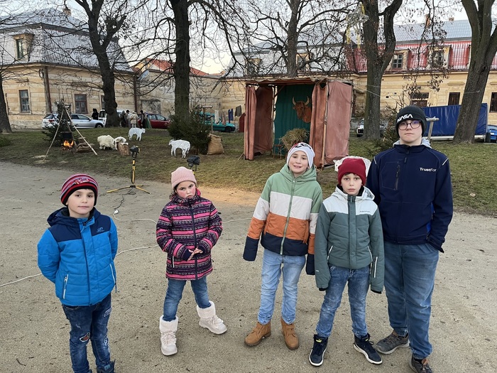 Dne 25. 12. 2024, na jeden z největších křesťanských svátků, Boží hod vánoční, se děti s tetou vychovatelkou vypravily na mši svatou do kostela sv. Stanislava v Jemnici, aby zde oslavily příchod a narození spasitele Ježíše Krista, který se narodil v Betlémě. Po příchodu do kostela se usadili do přední lavice, aby byly v centru dění a mohly sledovat křesťanské rituály, které k obřadu patří. Po mši svaté se vyfotily v krásně vyzdobeném kostele u jesliček s Ježíškem a u nádherného betléma. Odpoledne v areálu zámku zhlédly divadelního představení Živý betlém, znázorňující právě již zmíněné narození Ježíše Krista. Po skončení programu se ještě prošly po náměstí a zámeckém nádvoří, kde obdivovaly krásnou vánoční výzdobu.
