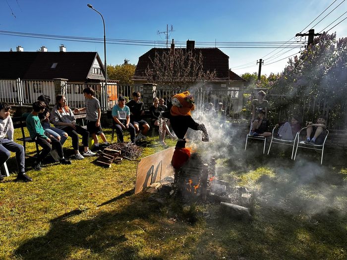 Ani děti v Jemnici se nenechaly zahanbit a tak se poslední den v dubnu nesl v duchu pálení čarodějnic, kde jsme si udělali vlastní pálení čarodějnic. Hranici nám připravil strejda údržbář, který také dělal hasící dozor, kdyby se náhodou oheň vymkl kontrole. Nanosili jsme k ohni lavičky a stoly, v kuchyni jsme nafasovali špekáčky, hořčici a pečivo a pak už jen čekali, až se hranice rozhoří. S dětmi jsme vyrobili i čarodějnici, kterou jsme na hranici upálili. Počkali jsme, až čarodějnice shoří a pak už jsme se pustili do opékání buřtů. Všichni jsme si pochutnali a užívali si teplého počasí. Na závěr proběhla společná soutěž v létání na koštěti. Děti se seřadily, posadily se na košťata a vystartovaly. Za úkol měly oběhnout domov v co nejrychlejším čase. Proběhly tři soutěžní kola a z každého vzešel jeden vítěz, který byl odměněn sladkou odměnou. Malou sladkost dostali všichni účastníci za to, že se zápalem soutěžili. Celý den jsme zakončili povídáním o tomto zajímavém dni. Děti se dozvěděly, kde se tady tento zvyk vzal a proč se dělá. Všichni večer usínali plni nových zážitku.
