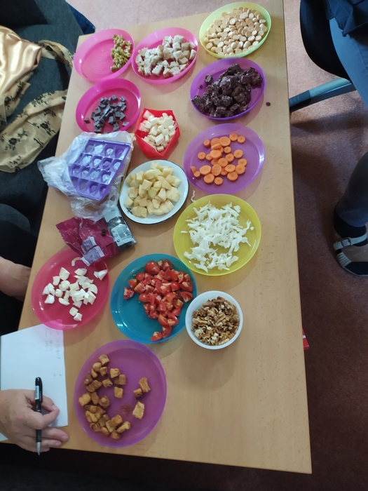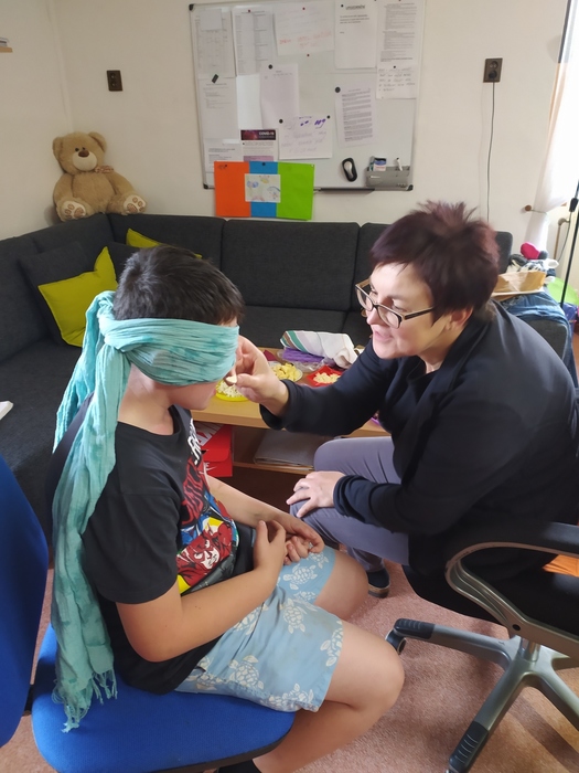 Dne 8.10. 2020 připravila pro děti tety Tereza, Mária, Maruška a Mirka ochutnávací hru. Poznat jídlo se zavázanýma očima není nic jednoduchého. Děti si to vyzkoušely na vlastní kůži. Tety jim připravily mnoho dobrot, které následně děti hádaly. Mezi jídly bylo jelito, aspik, piškoty, mrkev, čokoláda, sýr, rozinky, jablko, rajče, škvarky. Nechyběl ani chléb, oliva, ořechy a zelí. Některé potraviny ochutnaly děti poprvé. Občas si nemohli vzpomenout na název, i když ho měly doslova „na jazyku“. Z patnácti jídel ti nejlepší uhodli třináct chutí.