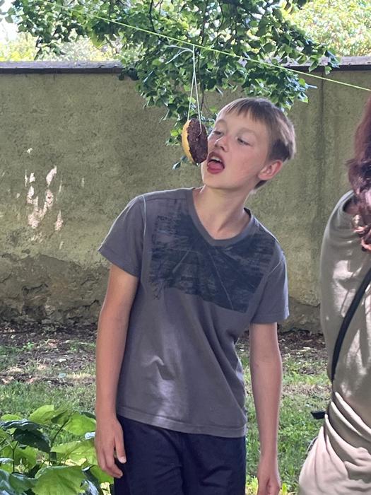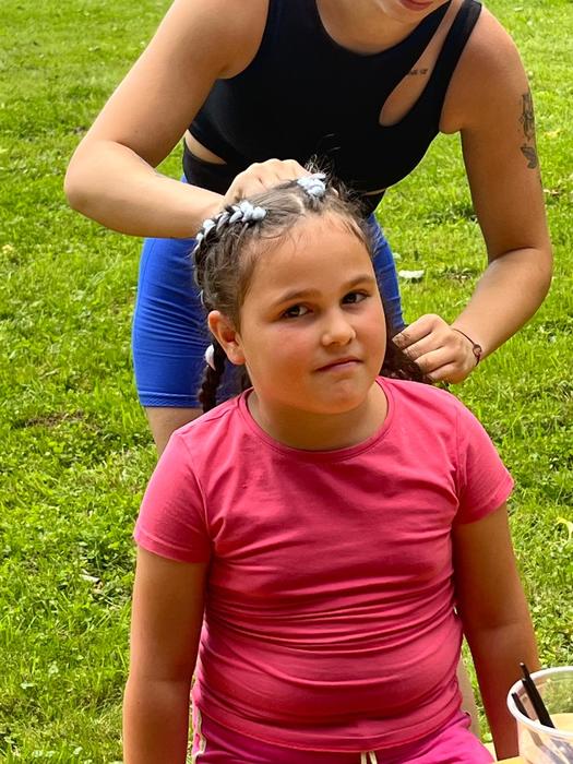 Otočil se rok s rokem a opět k nám zavítala dne 22. 6. 2024 paní Laštovičková s jejími přáteli, aby pro děti z obou pracovišť přichystali krásné odpoledne. Děti už věděly, co je zhruba čeká a moc se na tuto akci těšily. Jak v loni, tak i letos proběhly soutěže, kde si mohly děti vyzkoušet svoji zdatnost, kreativitu. Pojídaly donuty se založenými rukami za zády zavěšené na provazu mezi stromy, vyráběly hobbyhorse. Nejhezčí z nich byly ohodnocené krásnou knížkou. Ve velké oblibě je skákací hrad a také ježdění na koni. Letos se o tuto zábavu postaral kůň Nadir a poník Mia, které vodily dvě empatické dámy Lenka Musilová a Pavlína Štafová. Skákací hrad pro nás připravili Pavel Hladký a Jaroslav Hradecký, kteří spolu s tetami dohlíželi na to, aby se při skotačení někdo nezranil. Oba byli úžasní. Zvláště děvčata ocenila koutek, kde se Petra, Aneta, Kristýna Hájkovy a Vendula Vavříková věnovaly zaplétání copánků a malování na obličej. Tu se našli i chlapci. Děvčata byla velmi manuálně zručná a výtvory na obličeji byly úchvatné. Prodloužení copů si pochvalovala zvláště ta děvčata, která neměla svoje vlasy zatím tak dlouhé. Nejvíce si to užívala Kateřina. O pitný režim se dětem starali Jakub a Matěj Laštovičkovi, kteří s trpělivostí značili každému dítěti kelímek a byli při všem k ruce. Nápoje, ovoce, sladkosti věnoval dětem pan Igor Palásek z Rouchovan. Když už byly děti dostatečně vyskákané, vyježděné, kreativně nasycené a koně unavené, rozdělali jsme oheň a děti si opekly vuřty, které nám pro tuto akci jako sponzorský dar poskytla firma Družstevní jatka Sádek – družstvo, Čáslavice. Jako sladkou tečku na konce obdržel každý nejeden zmrzlinový kornout, který dětem jako sponzorský dar věnovala firma TIPAFROST, a.s., Třebíč. Odpoledne strávené s našimi přáteli bylo velmi krásné, děti si celou akci užily. A i počasí nám velmi přálo. Za takto krásně strávené odpoledne vděčíme všem, kteří se na celé akci podíleli a kteří jakkoliv přispěli, zvláště firmě DMS s.r.o. a Nadačnímu fondu Albert, kteří vše zaštítili finančně. Už teď se těšíme na příští rok.