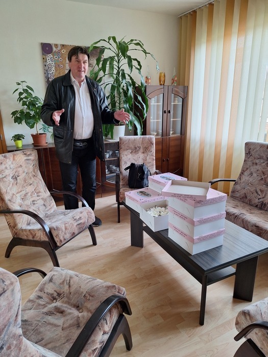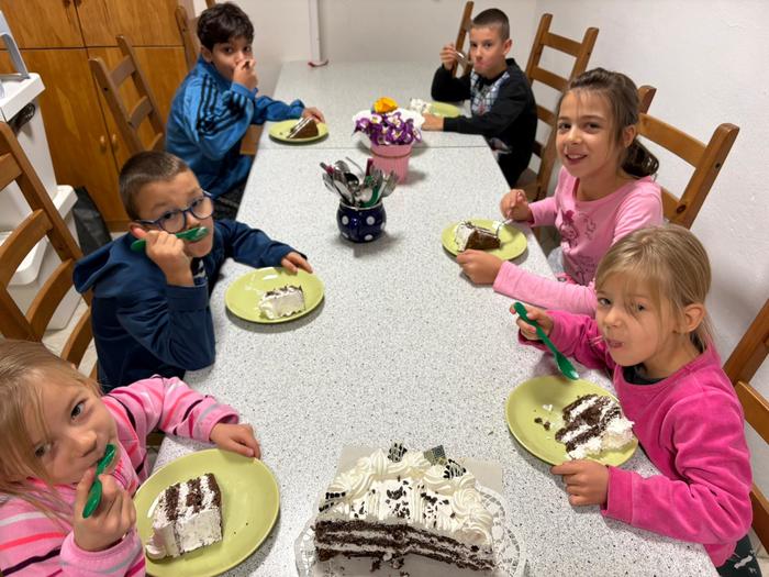 Dne 11. 11. 2025 k nám pan Kamínek dovezl sladké dorty. Dorty byly jako vždy naprosto božsky pohádkové a moc jsme si na nich pochutnali. Zároveň jsme si vyslechli napínavé vyprávění, jak pan Kamínek málem vyhrál 105 miliónů, kdyby měl o jedno číslo ve sportce jinak. Pane Kamínku, velmi Vám za dorty, které jsme dostali velmi děkujeme!!!