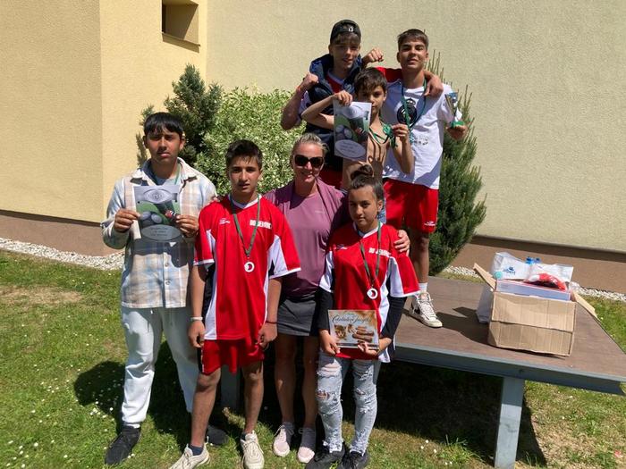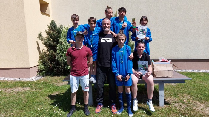 Nakonec přišel i kouzelník, po jehož vystoupení, bylo vyhlašování. Kromě medailí a pohárů jsme si odvezli i individuální ceny, Tonička za nejmladšího hráče a Bertík za nejlepšího hráče.