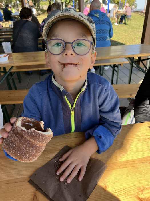 Počasí nám stále ještě přeje, a tak jsme se 21.9. 2024 vypravili do nedaleké vesnice na Kostnický Jarmark. Ten se tradičně koná každé roční období. Okoukli jsme tam spousty stánků s podzimními dekoracemi a rukodělnými výrobky. Některé z nás nejvíce zaujalo ražení mincí, které jsme si mohli sami vyzkoušet. Smlsli jsme si na výborném domácím trdelníku a zadováděli na připravených prolézačkách. Ti odvážnější z nás si dokonce zazpívali na pódiu s doprovodem. Jako sladkou tečku jsme si odvezli domů dvě krabice zákusků od milé paní cukrářky. Den jsem si tam báječně užili a už se těšíme na další akci.