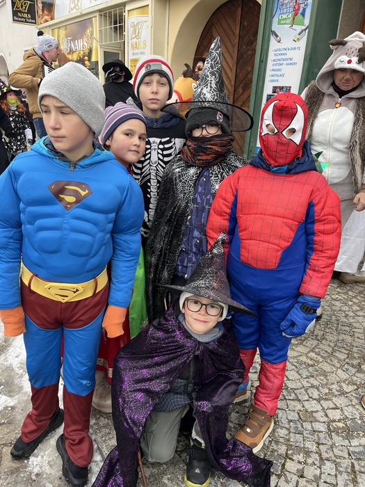 Dne 15. 2. 2025 jsme se zúčastnili jemnického Masopustu. Děti se oblékly do kostýmů a společně s ostatními maskami jsme se vydali za hudebního doprovodu na pochod centrem města. V některých domech na nás jejich "hospodáři" již čekali a pohostili nás masopustními koblihami, a jinými dobrotami, a protože byla zima, rádi jsme se zahřáli teplým nápojem. Pochod končil opět na zámku, kde byly všechny masky oceněné drobnou sladkostí. Dále následovalo symbolické pochování basy, což také proběhlo za asistence našich dětí. Všichni jsme si dnešní masopustní průvod velmi užili.