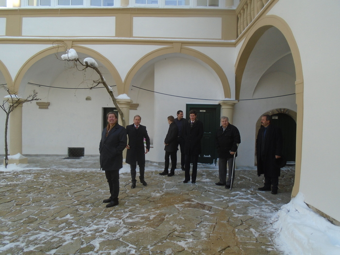 Není to moc dlouho,co nás svojí nečekanou návštěvou poctil potomek posledních majitelů zámku starohrabě George Salm – Reifferscheidt – Raitz. Návštěva byla velmi příjemná, byl mile překvapen, jak zámek vypadá. Vesnici chvíli po revoluci navštívil, v zámku však nikdy nebyl. Místo znal z fotek, kreseb a z vyprávění své matky, která sem jezdila na prázdniny a tety, která zde žila. Ani jedna již není naživu. Pan Salm projevil zájem, zda by nemohl ještě někdy přijet a rád by toto místo ukázal i svému mladšímu bratru Leopolodovi. Rád by se pozdravil i s místními lidmi, pohovořit s nimi a obohatit tak informace o své minulosti. Slovo dalo slovo a domluvili jsme se na termínu první adventní neděle. Čas byl stanoven na 11. hod. Účast potvrdil a skutečně přijeli oba George i Leopold, s Georgem ještě jeho syn. Celá návštěva probíhala ve spolupráci s obcí, která pro ně ve spolu s domovem sestavila program. Setkání bylo zahájené vzájemným přivítáním všech zúčastněných, následoval přesun do kostela a účast na mši svaté, pozdravení se s místními obyvateli, prohlídka hraběcí hrobky, kostela. Po celou dobu je doprovázel pan starosta Jiří Záškoda, jeho otec, překladatel Josef Alexa. Po mši svaté se přidal pan Brychta, místní kastelán František Špaček a paní Brychtová. Následovala prohlídka zámku, návštěva adventního trhu v prostorách zámeckého sálu a oběd v místní restauraci, který zaštítila paní Bláhová. Po vydatném obědě následoval návrat do dětského domova, kdy se přidala i paní ředitelka a kde jsme si společně prohlíželi dochované fotografie od místních lidí. I Salmové dovezli řadu fotek, a tak se porovnávalo a zjišťovalo, o které příbuzné jde, doplňovali se informace, jména osob, které byly mnoho let neidentifikované. Celé setkání bylo velmi spontánní, příjemné, přátelské. Ve večerních hodinách jsme se rozloučili a oba pánové se vydali ke svým domovům, které nemají zrovna moc blízko. George Salm žije trvale v Mnichově, jeho bratr Leopold Salm kousek od Vídně. Celkový pocit z jejich návštěvy byl velmi příjemný a Georg slíbil, že se začne učit česky.