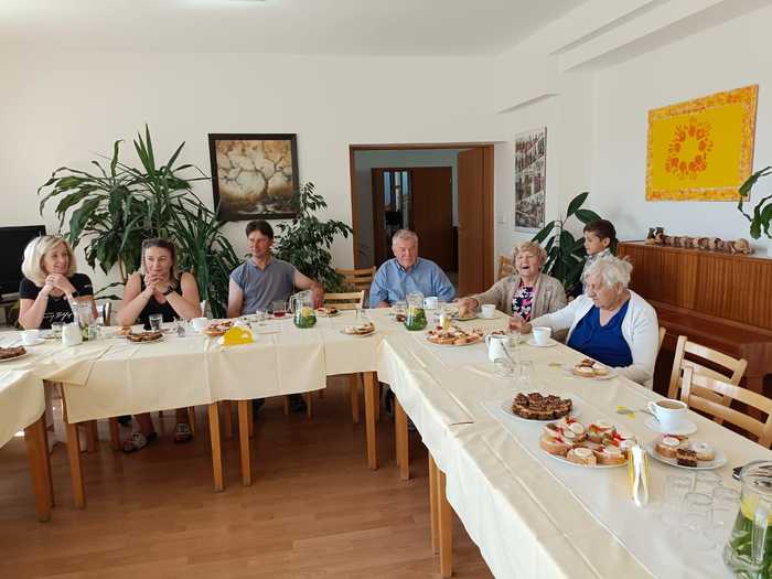 Dne 3.6. 2023 jsme strávili ve společnosti seniorů, kteří přijeli na návštěvu z Proseče Obořiště. Děti si připravily krátké pásmo písniček, básniček a pohádku "O slepičce a kohoutkovi" za které sklidili velký potlesk. Posezení bylo pro všechny příjemné, děti za asistence paní ředitelky nachystaly pohoštění, jak uvnitř v prostorách jídelny, tak venku na zahradě, kam se odebrali všichni zúčastnění po vystoupení dětí. Toto setkání probíhá každoročně v přátelském duchu, děti se věnovaly seniorům, prošli se s nimi po místní zahradě a proběhl i fotbal na hřišti. Chtěli bychom poděkovat za společné příjemně strávené odpoledne, které uteklo jako voda.