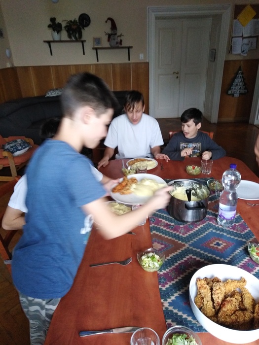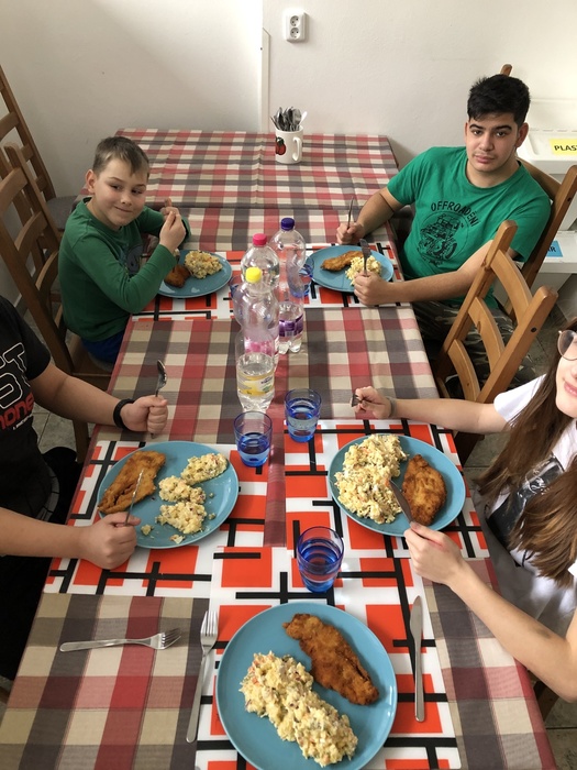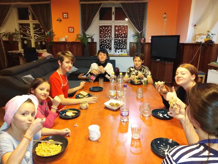 Začátkem ledna za námi přijela asistentka od paní senátorky Žákové paní Pavlína Štěrbová se svým manželem a dovezla na obě naše pracoviště celkem 8 kg kuřecích prsíček na nedělní oběd. Děti si z masa v neděli udělaly pořádné řízky a ještě jim zbylo na večeři mezi tousty. Paní Štěrbová dětem věnovala k nedělnímu obědu ještě různé druhy minerálek s příchutí, které byly pro děti zpestřením. Paní Štěrbová, velice Vám děkujeme, děti si na řízkách tak pochutnaly až se jim dělaly boule za ušima.