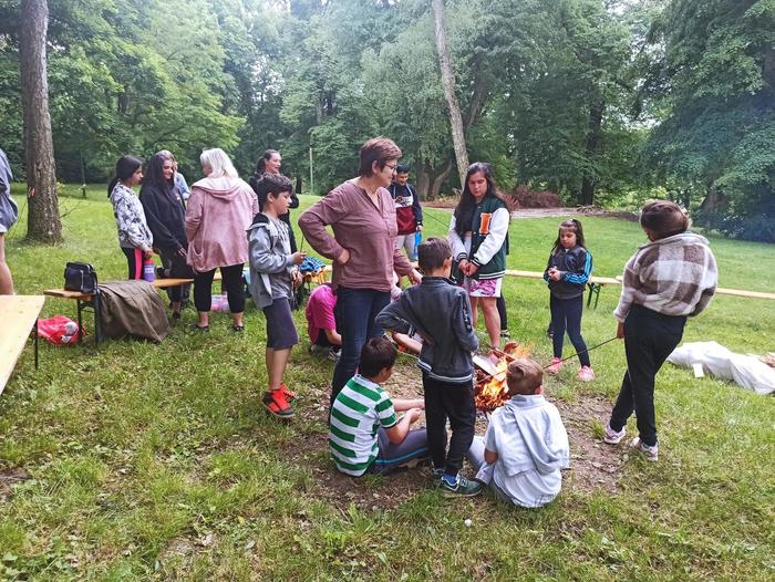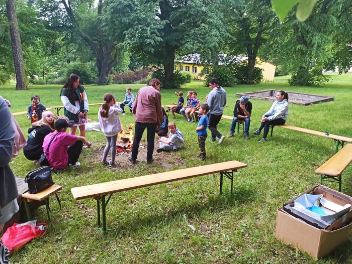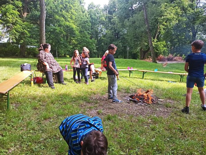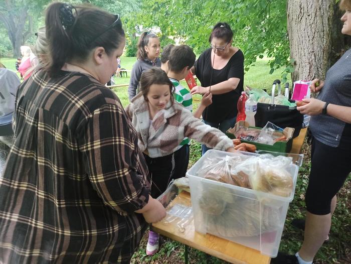 Sobotní odpoledne dne 10.6. 2023 si děti velmi užily. Na návštěvu k nám přijela paní Lahučká s manželem a přivezla nám špekáčky na opékání. Další očekávanou návštěvou byly děti z našeho hlavního pracoviště v Jemnici. Po rozdělání ohně a opečení špekáčků se děti rozběhly po parku a užily si společných her a dovádění. Paní ředitelka se věnovala našim hostům a společně si povídali co je nového v Jemnici i v Budkově. Paní Lahučká se svým manželem pak přejeli se podívat na naše hlavní pracoviště do Jemnice, kde pan Lahučký ještě nikdy nebyl. Paní Lahučká nám opět dovezla plné auto krásných věcí o které se děti málem popraly. Rodině děkujeme za krásné odpoledne, přátelství a také za všechny dovezené věci.