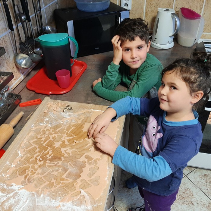 Vánoce se nezadržitelně blíží, a proto se děti s tetou Marcelou o třetí adventní neděli pustily do pečení vánočního cukroví. S dětmi jsme si zadělali těsto na oblíbené perníčky. Po upečení perníčků jsme se rozhodli nazdobit novou technikou, tak, aby připomínaly tzv. „dekor dřeva. Konečný výsledek měl úspěch. Druhé těsto bylo na pudinková srdíčka, která jsme po upečení slepovali marmeládou a pro ozdobu i chuť vylepšili čokoládou. Všechny děti pomáhaly, práce je bavila a tak co by to bylo za práci, kdyby nepřišla na konci sladká odměna v podobě ochutnávky.