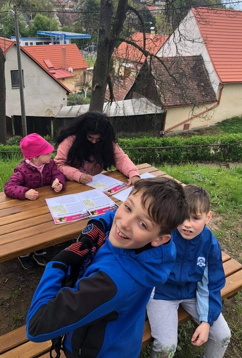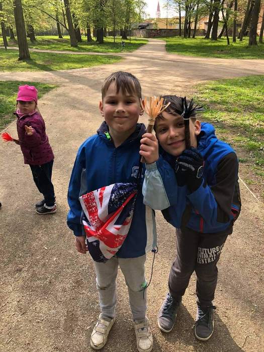Dne 7.5. 2021 jsme strávili sportovně a naučně odpoledne. Po svačině se vydaly všechny tři skupiny za dohledu tety Lídy a Katky na dvoukilometrové putování pod názvem „Po stopách Čarodějnice Špejlové“. V informačním středisku jsme si vyfasovali kartičky na plnění úkolů s názvem našeho putování a návodem na uvaření kouzelného lektvaru. Putování začínalo v blízkosti informačního centra, kde na dřevěném panelu na zámecké cestě jsme nalezli první zastavení s úkolem. Další zastavení pak následovalo na turistickém okruhu sv. Jakuba. Okruh byl označen bílou šipkou na zeleném pozadí. Toho se děti držely, aby nesešly z cesty, přišly by totiž o závěrečnou odměnu. Poslední zastavení bylo na náměstí u kostela sv. Stanislava. Během našeho putování děti plnily 8 úkolů. Všechny úkoly se podařilo dětem splnit a našly cestu ke skrytému pokladu, který byl umístěn v černé truhle u informačního centra. Na děti čekala odměna v podobě barevných pastelek připomínajících čarodějnická košťata. Putování po okruhu nám velice rychle uteklo. Děkujeme městu Jemnice za velmi pěkně připravený program nejen pro děti.