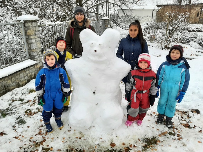 Poslední listopadový víkend nás počasí obdařilo bohatou sněhovou nadílkou, a proto aktivita sobotního odpoledne byla jasná. Boby a svah zajistili parádní zábavu. K radovánkám na sněhu samozřejmě také patří stavění sněhuláka, kterého si děti s tetou Marcelou společně postavily… no, v našem případě spíše medvěda Brumíka. Děti byly šťastné, že se po dlouhé době mohly vyřádit na krásném bílém a čistém sněhu.