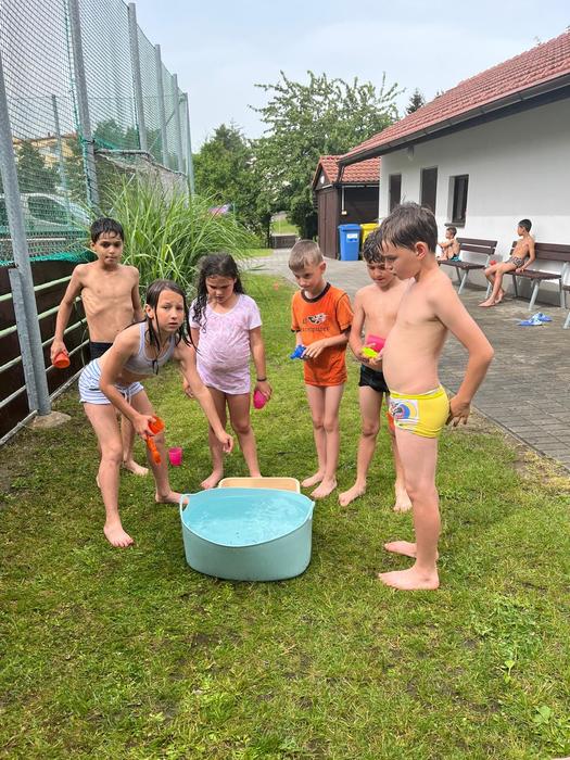 Jak se říká v pranostice, po Božím těle do vody směle. Toho se držely i děti z Budkova a v neděli zahájily sezónu koupání v bazénu. Samozřejmě bazén není tak velký, aby se do něj vešly všechny děti najednou a tak bylo potřeba utvořit tři skupinky, které se v bazénu střídaly. Po opuštění vody si děti rozložily deky na louku a mohly se i opalovat. I děti z Jemnice přestože nemají bazén si vodních radovánek užily dostatečně - kyblíkovou válkou. Budeme doufat, že si takových pěkných dnů užijí do prázdnin ještě hodně.