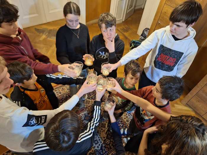 Silvestrovský den jsme s dětmi oslavily v našem domově. Během dopoledne se všichni zapojily do přípravy občerstvení. Chlapci nám mazali chlebíčky a děvčata je zdobila. Děti si chtěly sami vyrobit i vaječný koňak pro děti na přípitek. Odpoledne jsme se vydali na procházku kolem Budkova. Po návratu jsme se sešli všichni na jedné skupině, kde jsme měli připravené naše občerstvení a společně jsme si s dětmi popřáli všechno nejlepší do Nového roku. Místo ohňostroje si děti zapálily prskavky a měly z toho stejné potěšení.