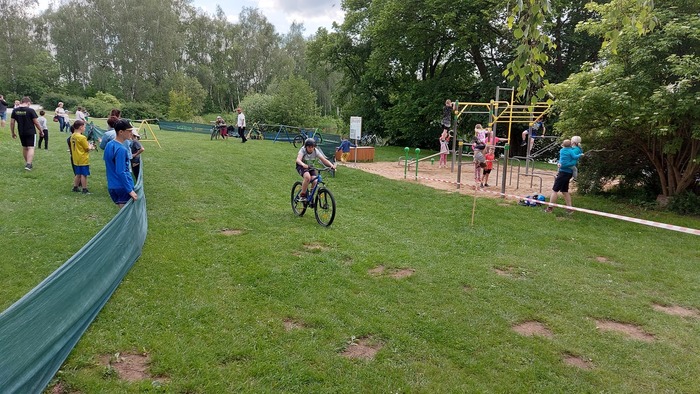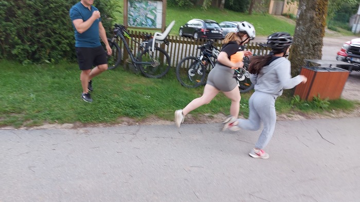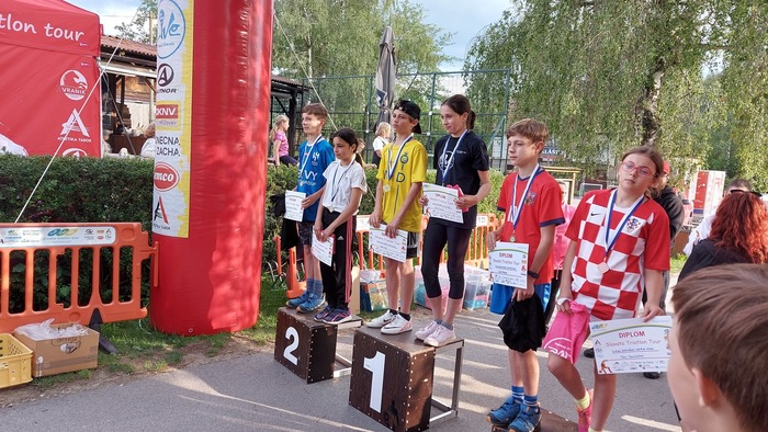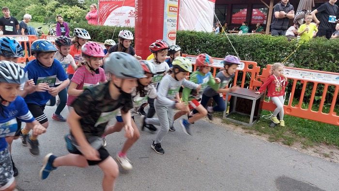Dne 23.5.2024 jsme reprezentovali náš domov při tradičních triatlonových závodech pořádaných panem Slavatou. Přiznáváme se bez mučení, že tréninku jsme moc nedali. Ale jako praví sportovci máme natrénováno z jiných sportů, které v Budkově provozujeme. Fyzičku sbíráme při fotbale, volejbale, florbale a dalších sportech. Také jsme byli na začátku závodů pěkně nervózní, ale nervozita odešla stejně rychle, jako přišla a my se dali do práce. Závod to byl náročný, někteří se vydali ze všech sil. Zejména jízda na kole do kopce nám dělala potíže. Ale aspoň víme, na čem máme zapracovat. Nakonec jsme nezůstali bez medaile, když Tonička vybojovala krásné druhé místo. Jen Petr, viz poslední foto, pořád nemohl pochopit, že mu bedna unikla.