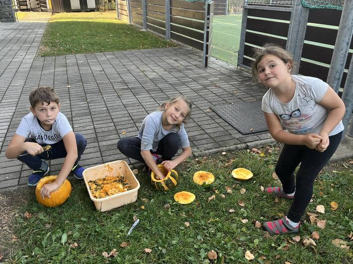Kdo je připraven, není zaskočen. Tím jsme se dnes řídili, když jsme se pustili do dlabání dýní. HALLOWEEN se blíží a chtěli jsme mít náš dětský domov už vyzdobený. Starší děti vykrajovaly obličeje do tykví a ty mladší z nich vydlabávaly dužinu. Někteří byli do práce tak zabraní, že dřeň měli dokonce ve vlasech. Hotové výrobky jsme si postavili na náš plot a večer je rozsvěcujeme. Až půjdete okolo našeho domečku, nezapomeňte se podívat.