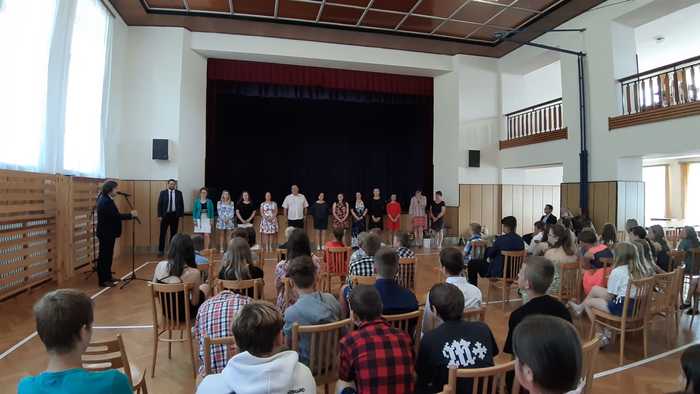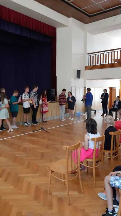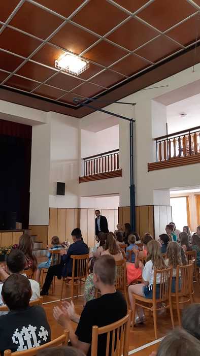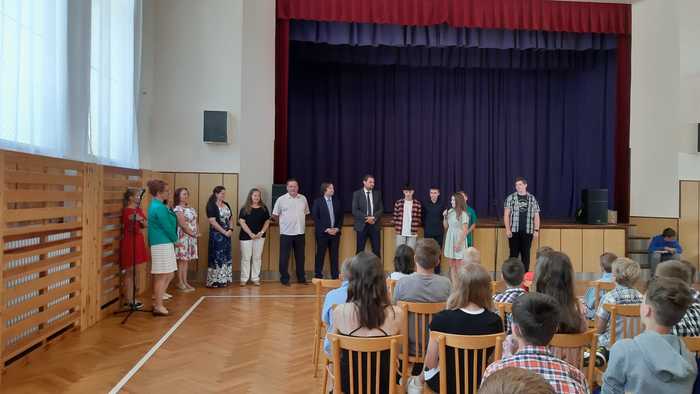 Tak a je to za námi! Celý školní rok utekl jako voda. Než si děti převzaly tolik očekávaná vysvědčení, byl tento letošní školní rok ukončen oficiálně v tělocvičně ZŠ dne 30.6. 2023. Kromě žáků všech tříd, celého pedagogického sboru, rodičů a přátel se slavnostního ukončení osobně zúčastnil pan RNDr. Jan Břížďala s doprovodem. Po úvodním slovu pana ředitele ZŠ, se rovněž ujal slova a popřál všem krásné prázdniny. Potom následovalo poděkování pedagogům a loučení se s deváťáky. Ti nám přečetli svých pár listů v kronice, oznámili, kam směřují jejich kroky po prázdninách, zazvonili na zvon, čímž symbolicky ukončili svůj pobyt na zdejší základní škole. Nechyběly ani slzy dojetí. Pak už rozchod do tříd a předávání vysvědčení. HURÁ PRÁZDNINY…