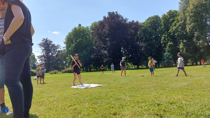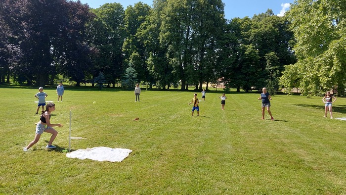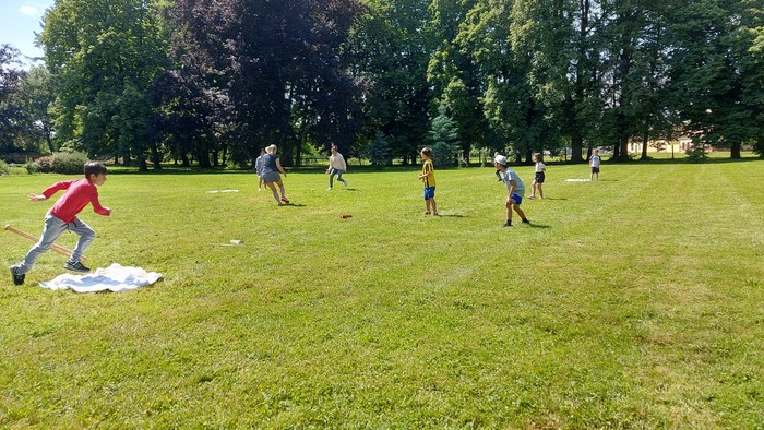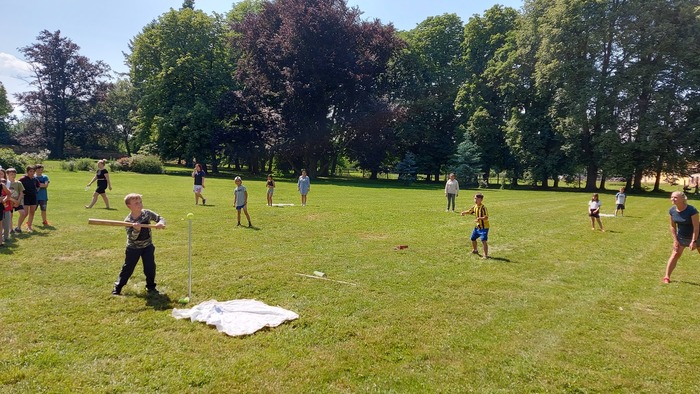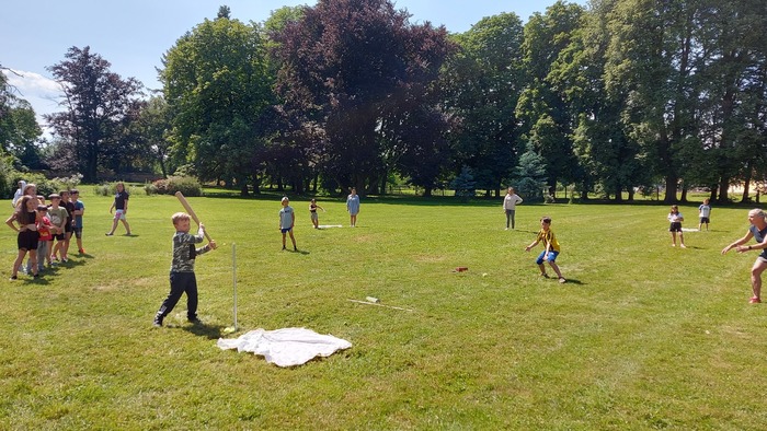 Na 18.6.2023 jsme si pozvali naše kamarády z Jemnice, protože jsme poslední dobou trénovali softball a chtěli jsme si svoje schopnosti vyzkoušet naostro. Nakonec se nám podařilo z dětí vybrat 4 týmy a mohli si tak uspořádat menší turnaj. Na začátku jsme si zopakovali pravidla, sehnali vybavení. To nebylo zrovna podle posledních pravidel, ale parádní tyč od našich údržbářů posloužila jako pálka a místo soft míčku starý tenisák. Turnaj jsme hráli systémem každý s každým. Zapojily se i tety. Teta Dáša hrála za svoji Jemnici, naše tety si raději, aby se nehádaly, vylosovaly družstva z Budkova. Strejda se chopil role přísného rozhodčího. Odehráli jsme parádní zápasy, plné napětí, zvratů a vytříbené techniky. Konečné pořadí odpovídalo natrénovaným hodinám a píli, kterou děti do přípravy vložily.