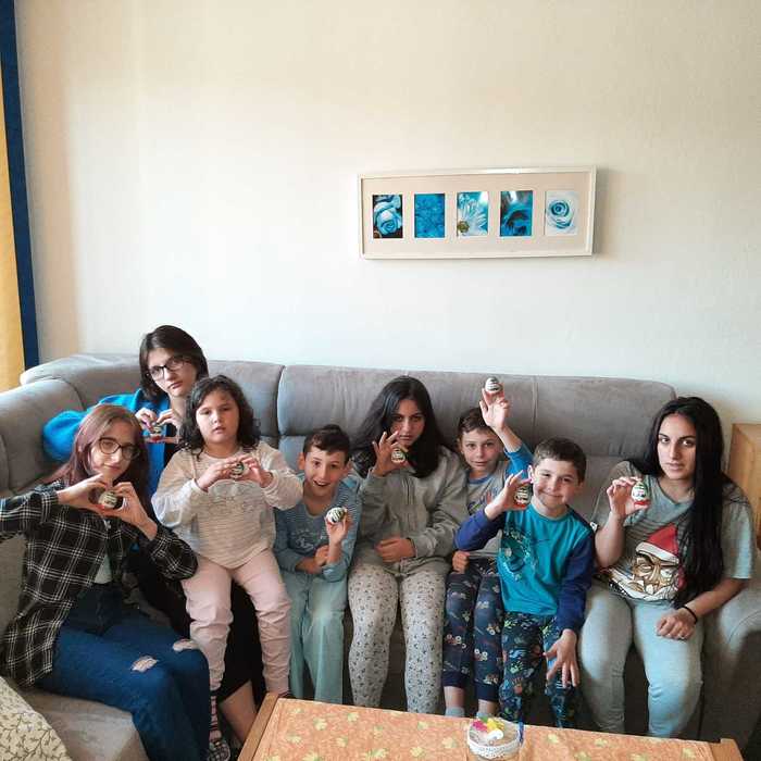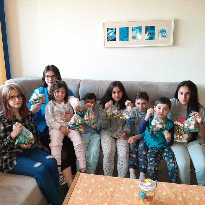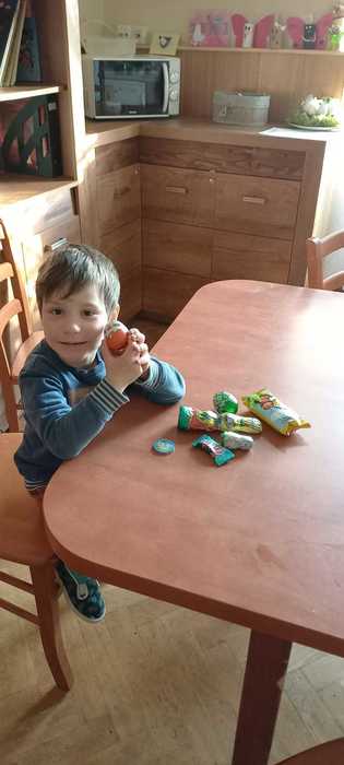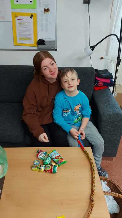 Velikonoční pondělí naši chlapci začali mrskačkou po Jemnici. S upletenou pomlázkou, kterou jim pomohla uplést teta Anička v neděli obešli všechny tety a kamarádky ze školy. Před obědem dostaly úplně všechny děti velikonoční balíček. O sladkosti se postarali naši andělé - manželé Ubrovi a Uherkovi. Paní Uherková a její manžel nám poslali finanční částku pro naše děti na nákup velikonočních sladkostí. Peníze jsme použili na nákup dobrůtek pro děti na obě naše pracoviště. O nákup sladkostí se postarala naše paní hospodářka, tak každé dítě v balíčku našlo čokoládového zajíčka a vajíčko, perníček a s jarním motivem a čokoládový penízek. Kinder vajíčko s hračkou a sušenku Deli zase našim dětem poslali manželé Ubrovi. Vše paní hospodářka od obou sponzorů zabalila do jednoho sáčku a připravila pro všechny děti velikonoční nadílku. Oběma sponzorům velmi děkujeme za přízeň a za velikonoční nadílku pro naše děti.