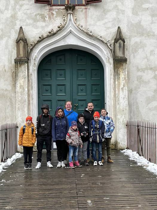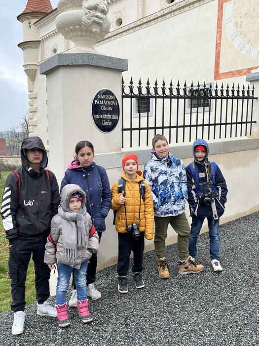 Dnešní sobotní výlet dne 8.4. 2023 pro nás připravila rodina pana Čaňka, paní Krejčové a jejich syna Kubíka. Překvapili nás už ráno, kdy nás přijeli vzbudit. Vzali nás na báječný výlet na hrad Bítov. Užili jsme si velikonoční prohlídku hradu spojenou s ochutnávkou tradičního mazance a klobásek. Nejvíce nás ale zaujala raritní výstava vycpaných psů. Další cesta vedla na nedaleký státní zámek v Uherčicích. Při prohlídce jsme si vzpomněli na pohádku „Hodinářův učeň“, která se zde natáčela. Poté nás rodina pozvala k nim domů na chutný oběd. I přes aprílové počasí jsme si den velmi užili a těmto milým lidem děkujeme.