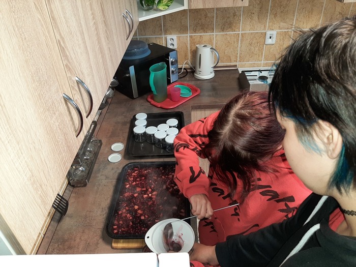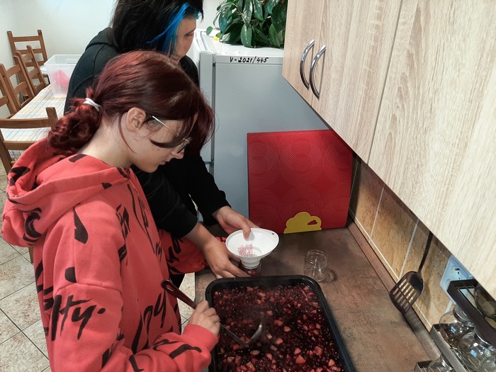 Jedno podzimní sobotní odpoledne se děvčata společně s tetou Marcelou pustily do výroby pečeného čaje. Nejprve jsme si všichni zajistili různé druhy ovoce, např., rybíz červený i černý, který tvoří základ čaje. Dále jsme náš čaj obohatili o další druhy jako např. jahody, krájená jablka, hrušky, švestky, citron a pomeranč. Pro vůni jsme použili badyán, řebíček, skořici a vanilku. Vše jsme na hlubokém plechu promíchali, ocukrovali a v troubě pekli. Po upečení naplnili do skleniček a zavařili. Abychom zjistili, zda se nám čaj povedl, děvčata jej ochutnaly a shodly se, že je výborný.