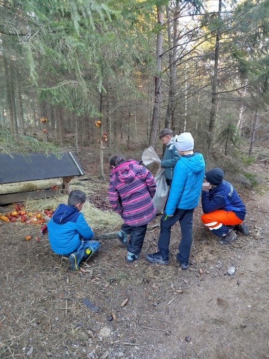 V sobotu 28. 12. 2024 jsme využili hezkého počasí a odpoledne jsme vyrazili na pěší výlet na kopec Modrák. Cestou jsme hráli různé hry jako na schovávanou, zkoušeli indiánský běh nebo hod šiškou. Nezapomněli jsme ani na lesní zvířátka, pro která je v tomto zimním období obtížné najít potravu, a proto jsme s sebou nesli pytel sena a řepu, které jsme postupně zakládali do krmelců lemující vycházkovou cestu. Zpátky do domova jsme se vrátili v podvečer, kdy se na obloze objevily červené obláčky a vytvořily krásnou podvečerní atmosféru. Po návratu domů jsme se zahřáli teplým čajem a pochutnali si na cukroví.