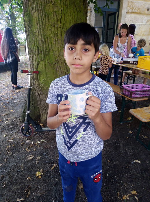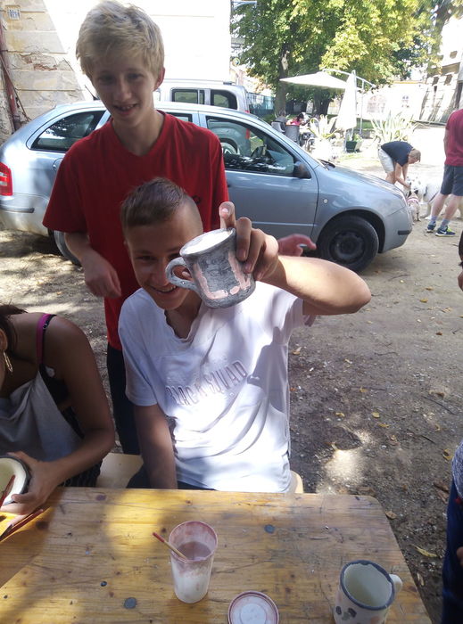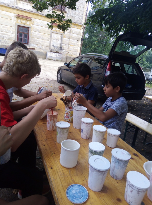 Ve čtvrtek 25. 8. 2022 jsme se společně vydali na akci, kterou pořádalo město Jemnice pro děti. Akce měla název „Výtvarné dílny pro děti“ a tentokrát si děti mohly namalovat hrnečky podle své fantazie. Ihned po příchodu jsme se usadili a pustili se do zdobení. Děti se chopily štětců a začaly bohatě zdobit svá dílka. Protože fantazii se meze nekladou, tak brzy hrnečky hrály všemi barvami a různými ornamenty. Po dokončení práce jsme zjistili, že kromě hrnečků se nám podařilo vyzdobit barvami také vlastní části těla, zejména ruce a nějaké to oblečení. To nám však příliš nevadilo, neboť se ztrátami jsme počítali a hlavně jsme měli dobrý pocit ze svých výrobků. Teď už se jen těšíme, až nám hrnečky vypálí v peci a my si je budeme moci vystavit u nás v domově.