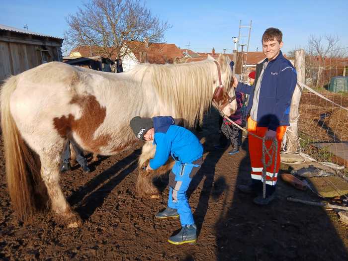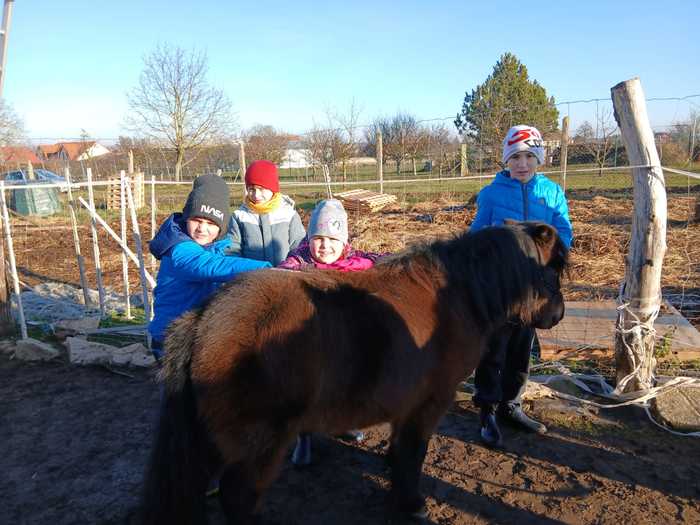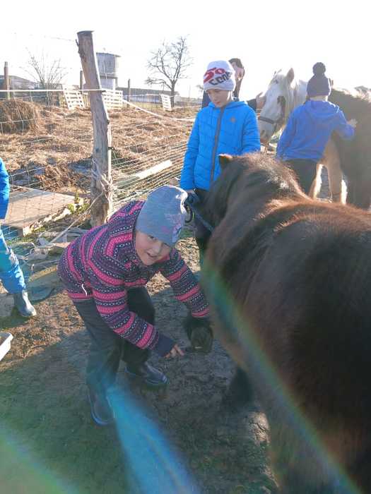 Dnes 23.12. 2024 jsme se s dětmi vydali na výlet na statek. Po příjezdu jsme si společně prohlédli všechna místní zvířátka. Viděli jsme pejsky, prasata, slepice a nakonec jsme šli ke koním. Tam jsme si řekli, jak se u koní chovat a co vše nás dnes čeká. První byla na řadě práce a pak za odměnu ježdění na koních, což bylo pro děti největším zážitkem. Děti si dnešní den užily a už se těší na další výlet.
