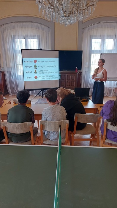 Dne 26.5. 2023 odpoledne k nám do Budkova zavítali čtyři mladí lidé z projektu Attavena. Pro děti měli připravený program, který měl sloužit jako „ ochutnávka letního tábora“. Dětem se moc nechtělo, přistupovaly k tomu dost skepticky. Neustále opakovaly, že takových akcí už měly dost a že je to nebaví. Nakonec se však zúčastnily. Protože bylo krásné počasí, aktivity se soustředily ven do našeho parku. Naši hosté si s dětmi nejprve povídali, navzájem se představili a získávali jejich přízeň. Postupně přešli k činnostem, ke kterým děti přistupovaly velmi zodpovědně a nakonec si při nich užily spoustu legrace. Plnily řadu úkolů, při kterých děti musely spolupracovat, vytvářely komiksy, vzájemně se povzbuzovaly. Posledním úkolem bylo sebrat ze země jednu kartičku, na které byl obrázek, a každého z nich bylo úkolem říci, proč si tento obrázek vybral a jak by zhodnotil dnešní den. Děti hodnotily velmi pozitivně a samy uznaly, že i když se jim zprvu moc nechtělo, nakonec byly rády a bavilo je to. Počasí bylo krásné, pobily na čerstvém vzduchu a dobře se zabavily. Už se těší na další návštěvu.