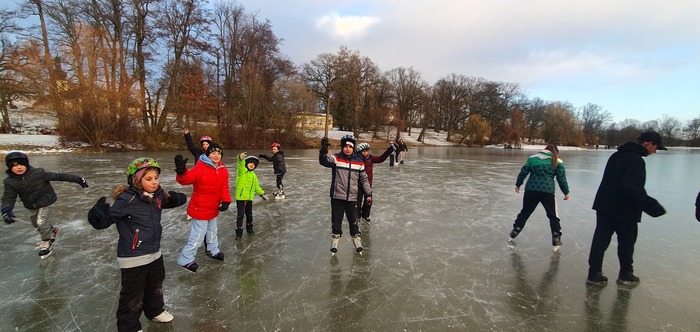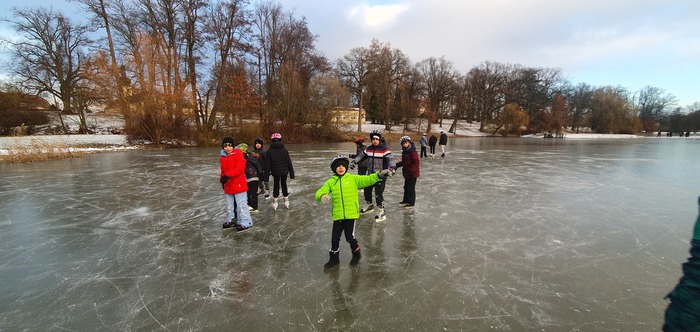 Dne 17.1. 2024 jsme se s dětmi vydali na rybník, kde jsme si po téměř roce opět vyzkoušeli bruslení na ledu. Pro některé děti to byla jejich první zkušenost s bruslením, pro jiné už stará známá. Bruslení je skvělý způsob, jak si zimní dny zpříjemnit a zároveň posílit tělo i ducha. Bruslení totiž zlepšuje rovnováhu, koordinaci, vytrvalost a rychlost. Navíc je to i dobrý trénink pro mozek, protože vyžaduje soustředění. Některé děti se od posledně zlepšily a dokázaly jezdit rychle a obratně. Nejvíce je bavilo jezdit přes rybník tam a zpět a soutěžit mezi sebou. Také se učily jezdit pozpátku, což byla pro mnohé z nich velká výzva. Zábavu si užily i ty děti, které ještě neuměly bruslit a potřebovaly pomoc. Pomáhali jim starší sourozenci a tety vychovatelky a postupně se učily základní dovednosti. Dnešní bruslení bylo pro nás všechny krásným zážitkem v zimním období. Těšíme se, že si bruslení zopakujeme a budeme se dále zdokonalovat.